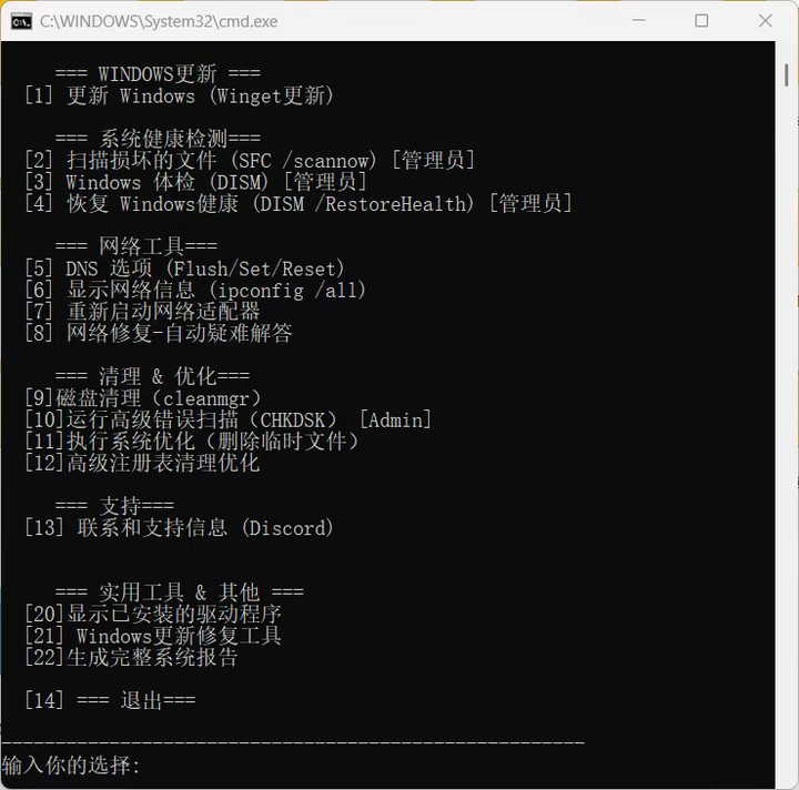 [30] 联系支持及支持信息(Discord)[输入 n 或 help 获取帮助]