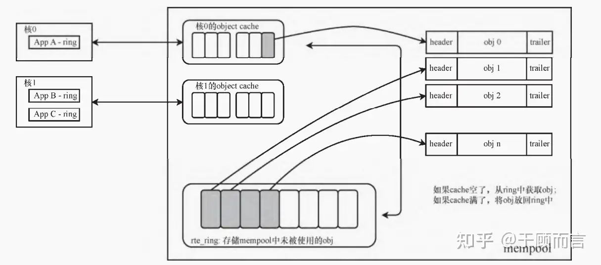 ,以便网卡可以持续接收后续的数据包。驱动从内存池 (rte_mempool