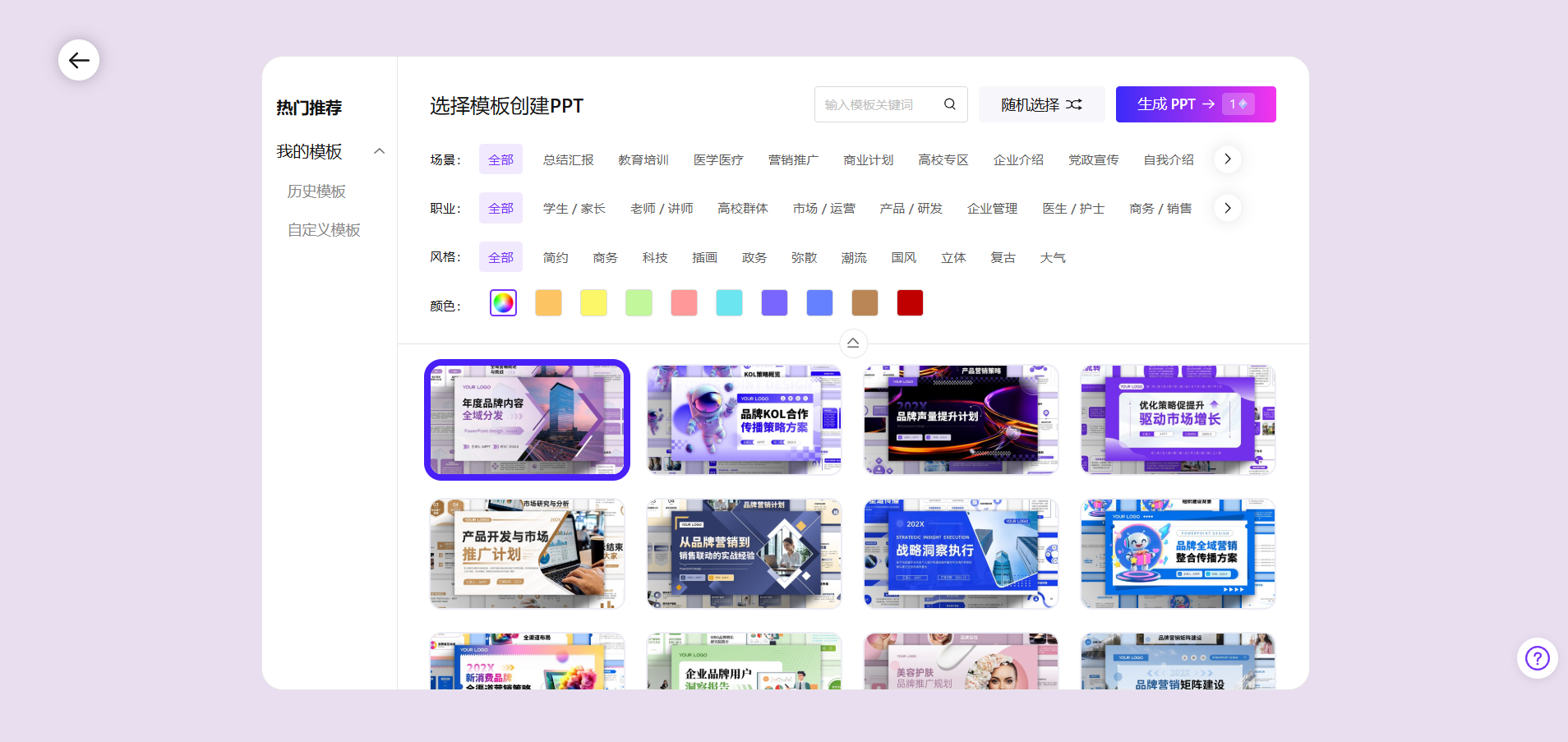 综合评价:更适合创意设计类需求,但在专业商务场景的模板丰富度上不及AiPPT。