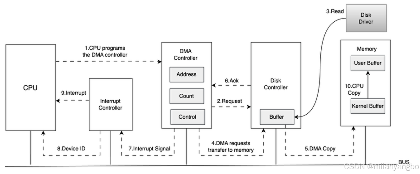 尽管DMA大幅提升效率,但I/O操作(涉及总线仲裁、上下文切换、中断处理等)仍是程序中相对耗时和复杂的操作。