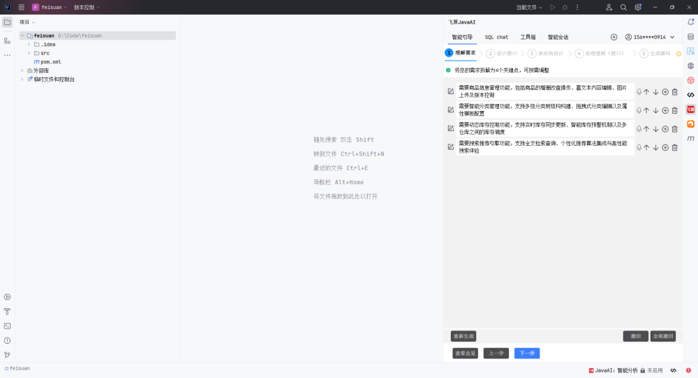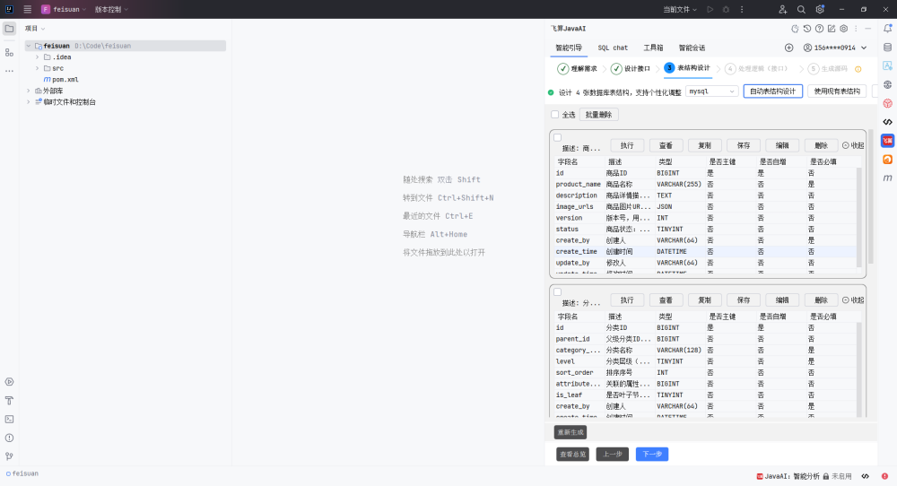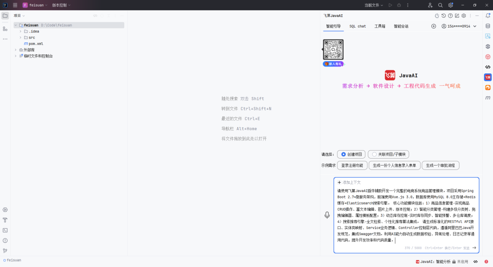 输入到飞算JavaAI的智能引导中: