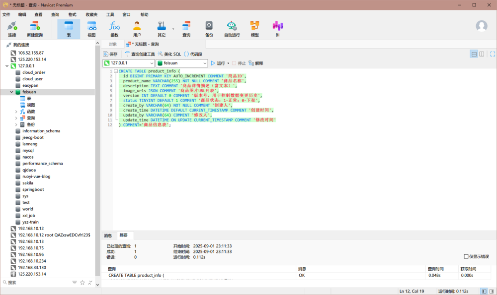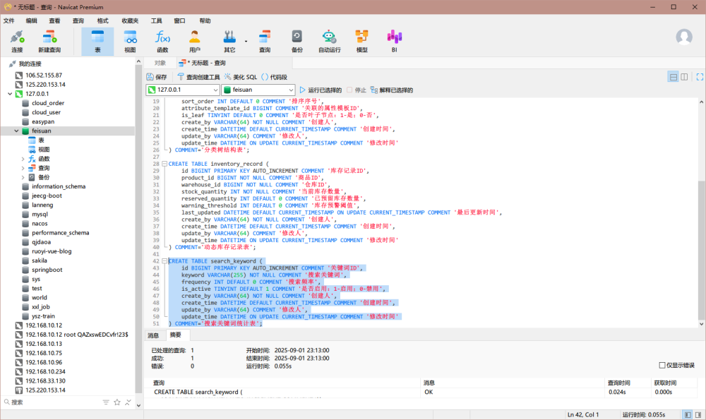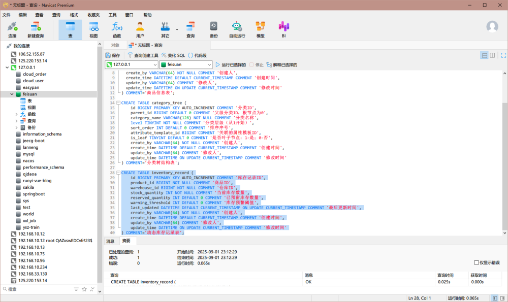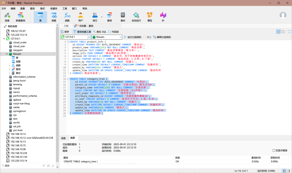 在本地的Mysql数据库中将生成的sql脚本进行创建