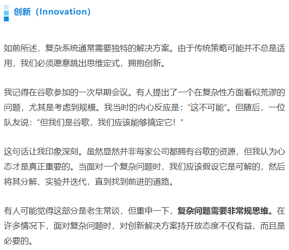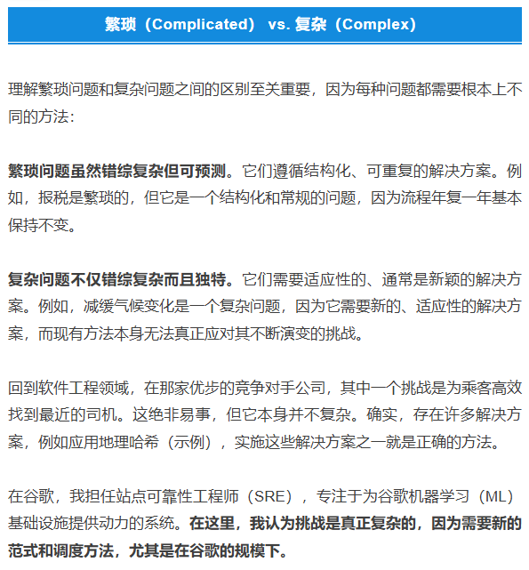 技术社群的这篇文章《我在Google当SRE时学到的:如何处理复杂系统》是谷歌工程师Teiva Harsanyi写的有关"复杂系统"的介绍,其中谈到的几个观点,包括蕴含的逻辑,值得我们借鉴。