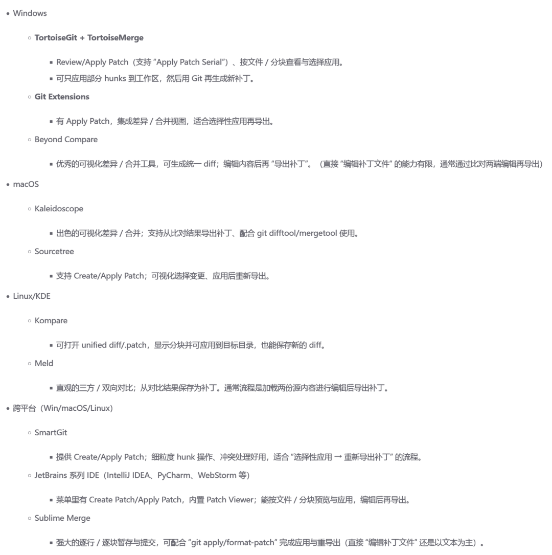 二、[问] 有什么 Git 补丁文件 (.patch) 编辑工具(GUI)吗?