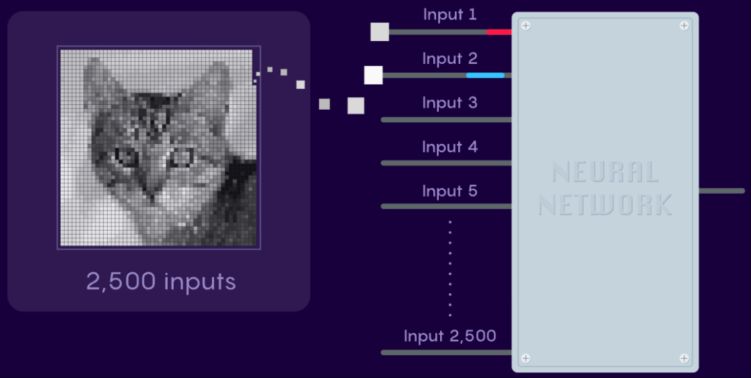 输入神经网络,让权重参数用大量的输入数据做拟合,只要有足够的数据点,我们就可以训练一个大型网络来区分猫和非猫。