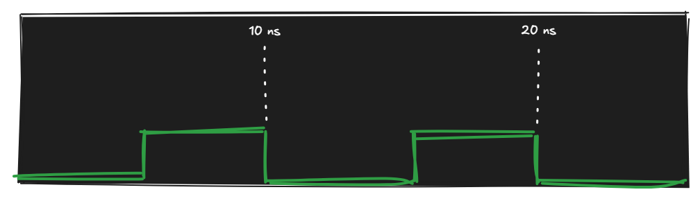 在硬件中,我们处理的时间单位称为时钟周期。作为开发者,我们可以根据需要设置任意的时间段。通常,单个时钟周期的范围从 1 皮秒 (ps) 到 1 纳秒 (ns),我们运行的任何操作都将在时钟周期之间执行。