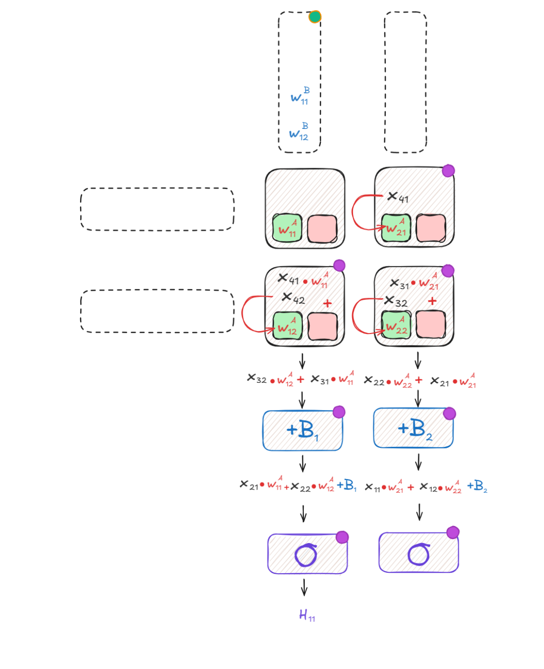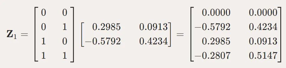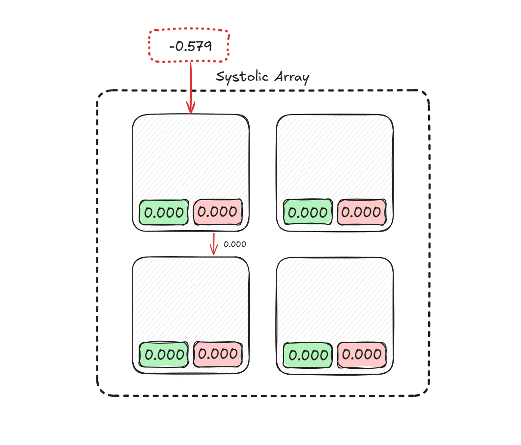 以我们的异或运算示例为例,我们来看看第 1 层如何处理数据。首先,脉动阵列计算