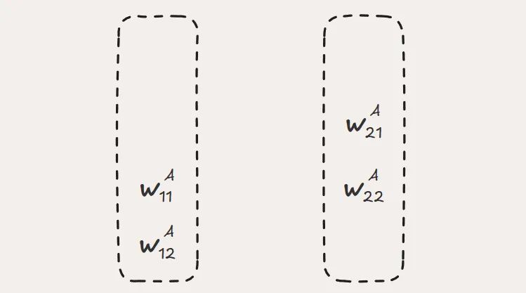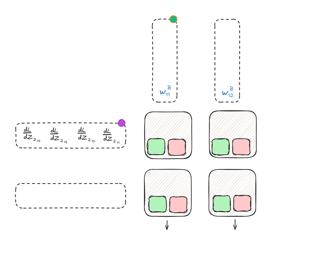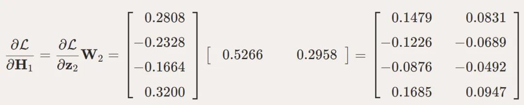 ,得到损失函数关于所有第二层参数的梯度。由于所有梯度实际上都是梯度矩阵,我们可以使用收缩阵列。