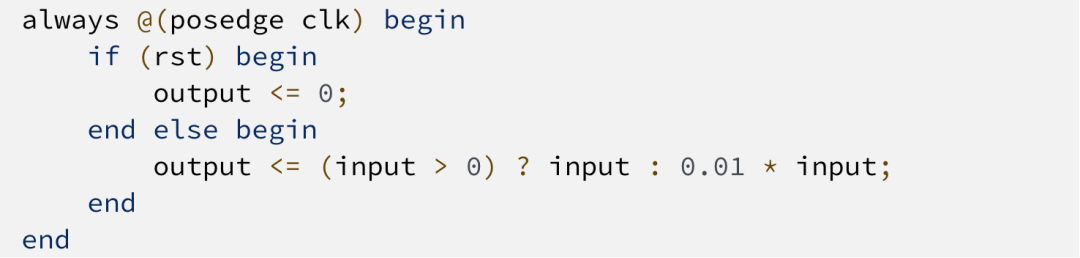 硬件中的 Leaky ReLU 导数实现展示了条件逻辑。