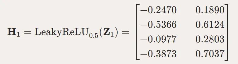 其中 α=0.5 是我们的泄漏因子。对于矩阵,这适用于每个元素。