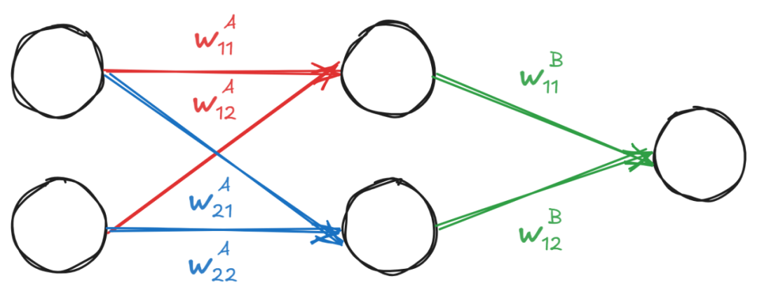 当我们开始这个项目时,我们只知道方程 y = mx + b 是神经网络的基础构建块。然而,我们需要完全理解神经网络背后的数学原理,才能在 TPU 中构建其他模块。因此在开始编写任何代码之前,我们每个人都计算出了一个简单的 2 → 2 → 1 多层感知器 (MLP) 的数学原理。