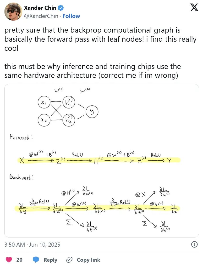 好了,我们已经解决了推理问题 —— 那么训练呢?有趣的是,我们可以将用于推理的架构用于训练!为什么?因为训练只是矩阵乘法,只是多了一些步骤。