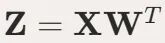 等式的第一步是将 m 与 x 相乘,以矩阵形式表示为 XW^T: