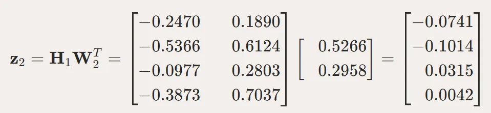 对于第 2 层,第 1 层的输出 (H1)现在成为我们的输入: