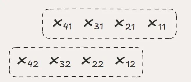 现在,假设我们要进行连续推理(例如,自动驾驶汽车每秒进行多个预测)。这意味着我们需要同时发送多条数据。由于数据本质上是多维的,并且具有许多特征,因此我们需要非常大的矩阵维度。然而,XOR 问题简化了维度,因为只有两个特征(0 或 1)和 4 种可能的输入数据(0 和 1 的四种二进制组合)。这为我们提供了一个 4x2 矩阵,其中 4 是行数(批处理大小 batch size),2 是列数(特征大小)。