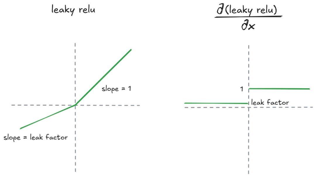 通过对激活函数(在我们的例子中是 LeakyReLU)求导。