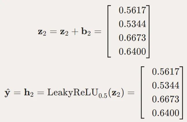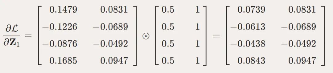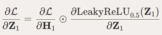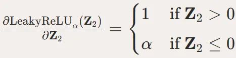 由于 z2 的所有元素均为正,因此 LeakyReLU 梯度为: