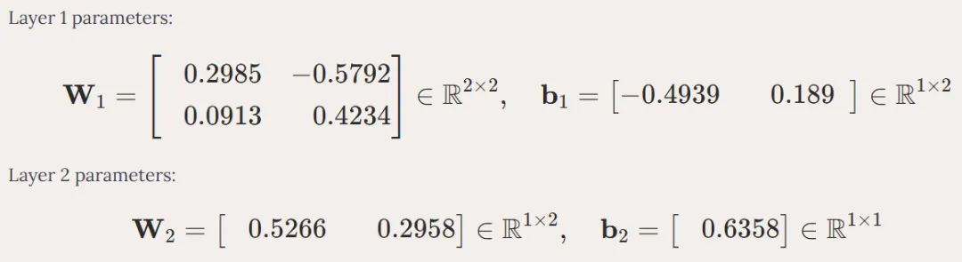 我们的脉动阵列接受两个输入:输入矩阵和权重矩阵。对于我们的异或网络,使用以下权重和偏差进行初始化: