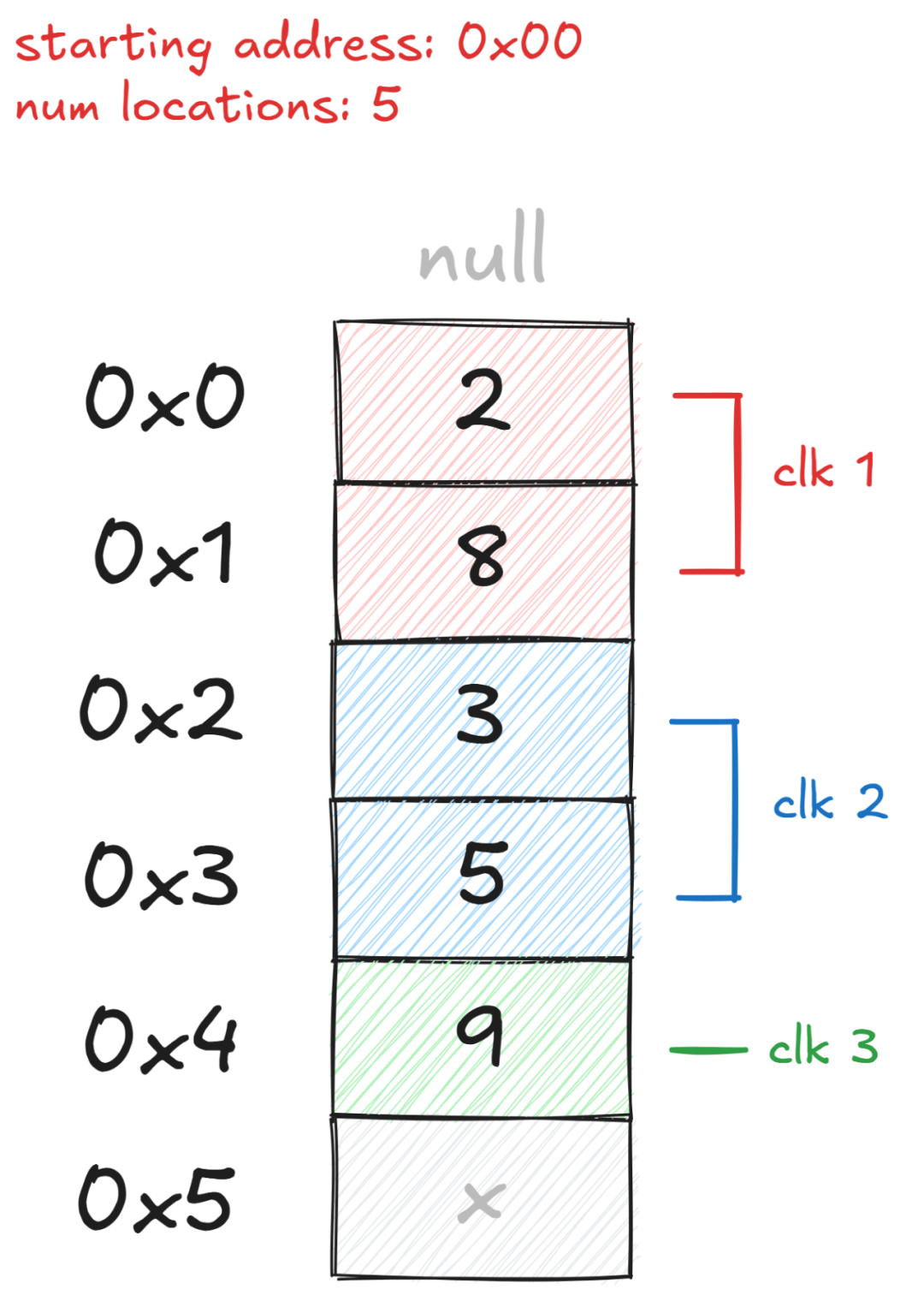 要读取值,我们需要提供起始地址和值的数量,以及我们希望 UB 读取的起始地址和位置数量,这样它每个时钟周期就会读取 2 个值。写入是一种类似的机制,我们需要指定要写入两个输入端口的值。读取机制的优点在于,一旦我们提供起始地址,它就会在后台运行,直到读取给定位置的数量,这意味着我们只需要每隔几个时钟周期提供一条指令。