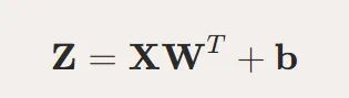 其中 X 是我们的输入矩阵,W 是我们的权重矩阵,b 是我们的偏差向量。