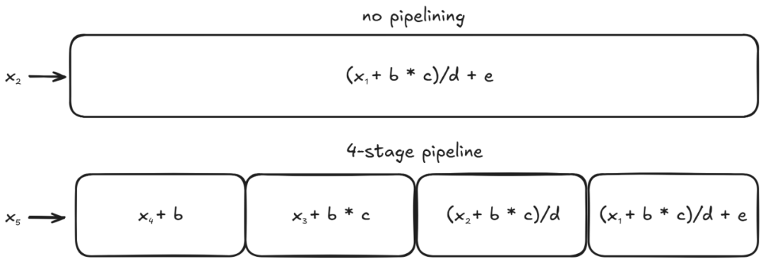 现在你可能会问 —— 为什么我们不把偏置项和激活项合并在一个时钟周期内?这是因为流水线技术!流水线允许多个操作在 TPU 的不同阶段同时执行 —— 无需等待一个完整的操作完成后再开始下一个操作,而是将工作分解成可以重叠的阶段。