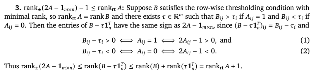 到目前为止,研究者描述的这些概念与矩阵的符号秩密切相关。在本文的其余部分,他们将利用符号秩来建立主要的界限。