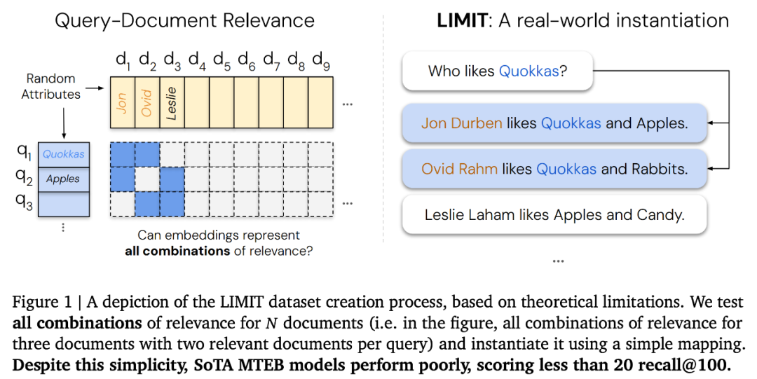 接下来,研究者将(1)该理论与现有数据集建立联系;(2)为现有 SOTA 模型构建一个极其简单却又极度困难的检索任务。