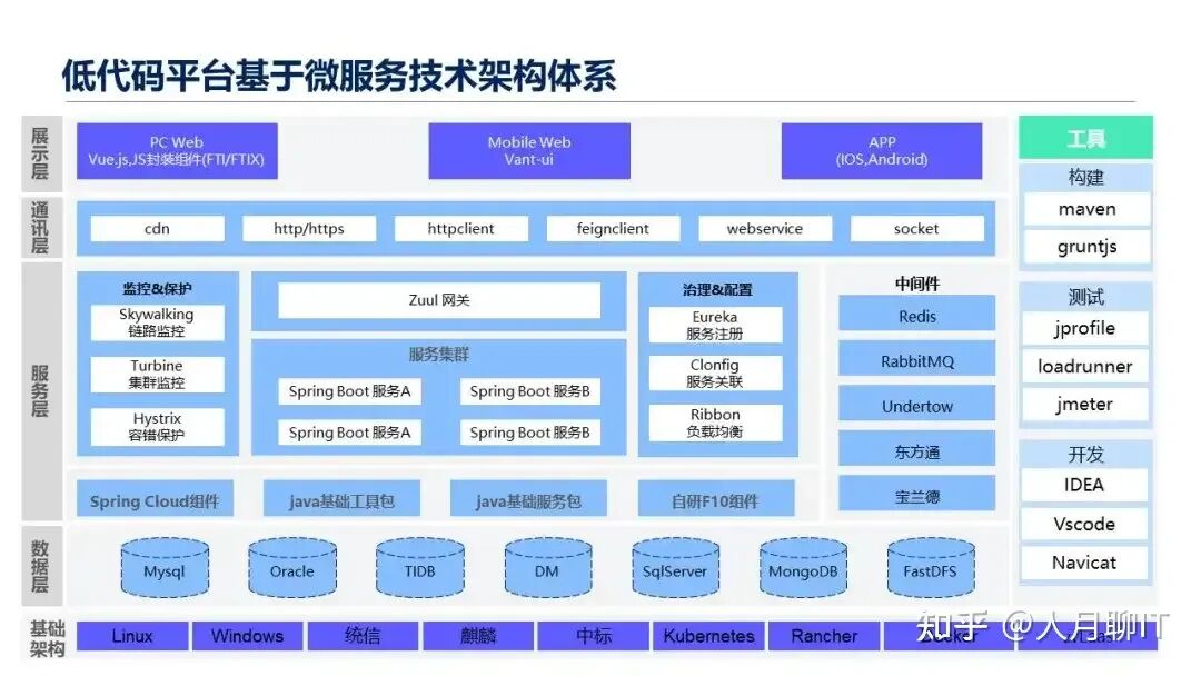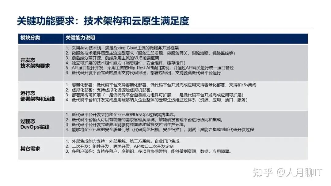 最后一个就是对于我们整个低代码开发平台的技术架构的先进性和云原生架构的满足度方面的内容,我把它分成了几方面的。