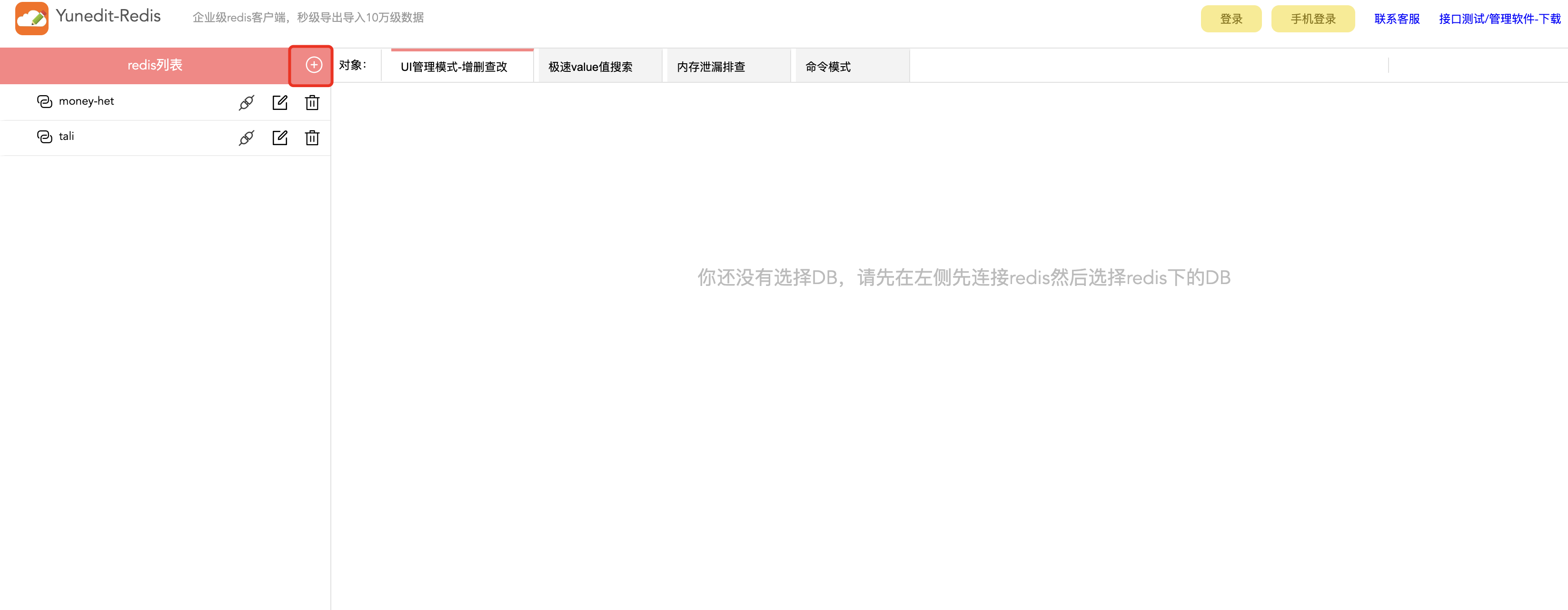 一、打开yunedit-redis,连接上需要导出数据的redis实例。