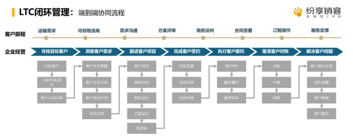 CRM以客户为中心构建了LTC(Lead to Cash)闭环管理流程。从寻找目标客户到解决客户问题,CRM系统实现覆盖客户旅程的每一个环节。通过流程管理,企业可以清晰地看到销售漏斗的转化情况,及时调整销售策略。