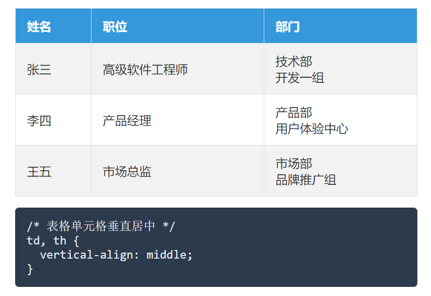 如不需要垂直居中,则在表格CSS中指定vertical-align为top、bottom等参数。