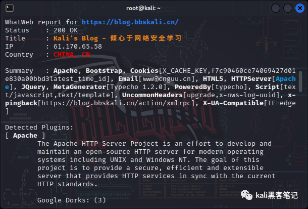 算是一款比较很好上手的web信息收集工具。在实际操作中,用最短的时间获得有用的价值。