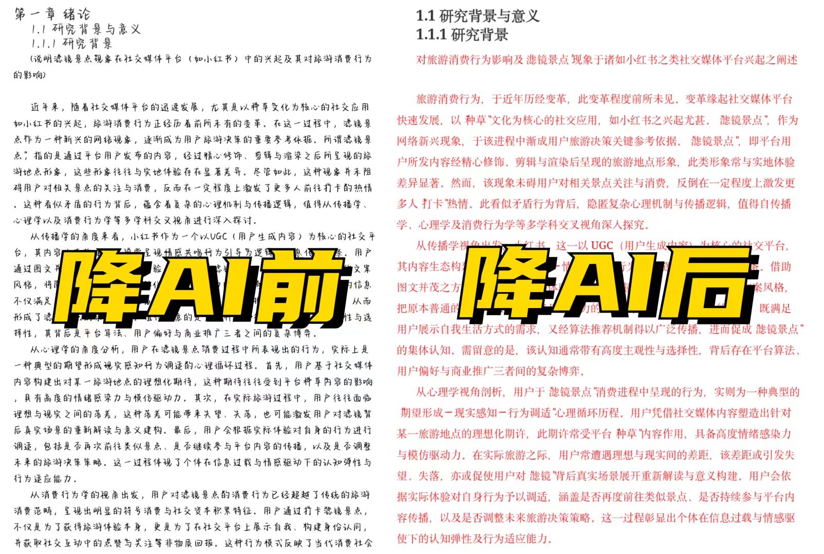 而且它没有为了降AI而降AI,并没有那么口语化,还是保留的学术的专属风格的,前后字数也没有变得很多,一直在1000字以内~