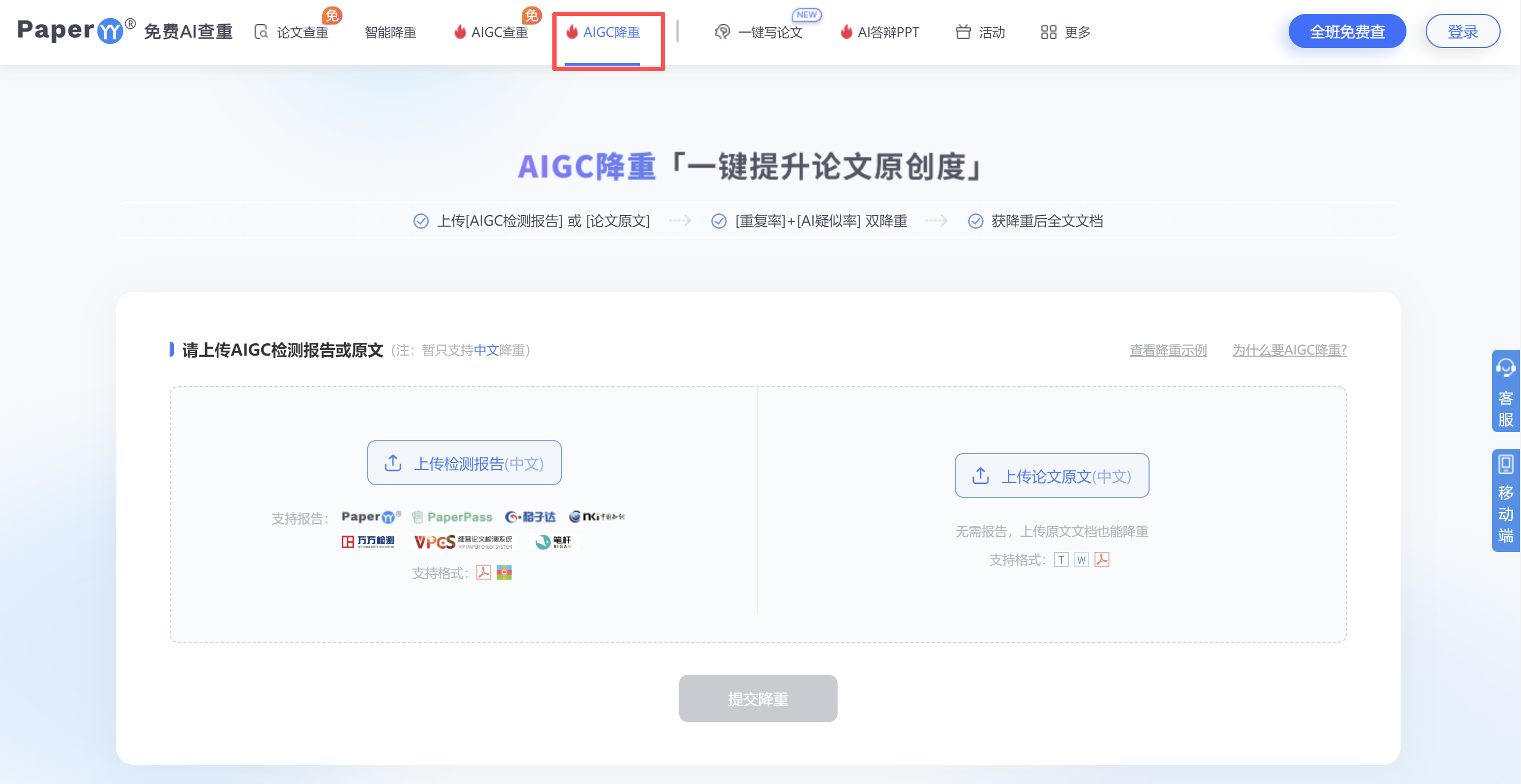 说到Paperyy,学姐一开始还是满怀期待的!毕竟人家是传统降重界的老大哥了,现在新增了AIGC降重功能,想着总不会太拉跨吧?