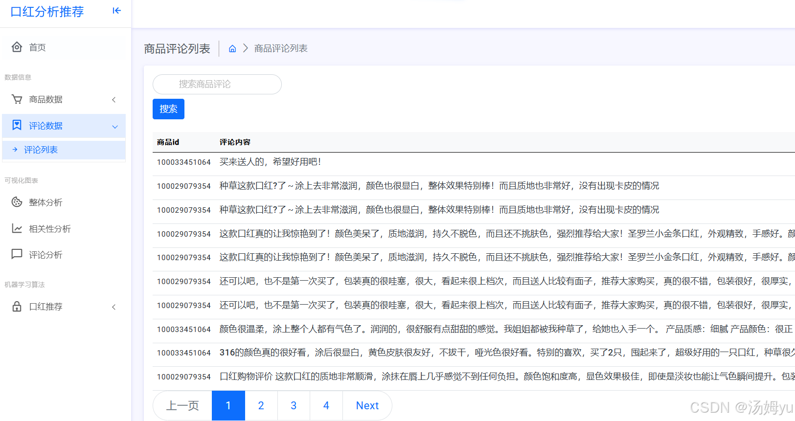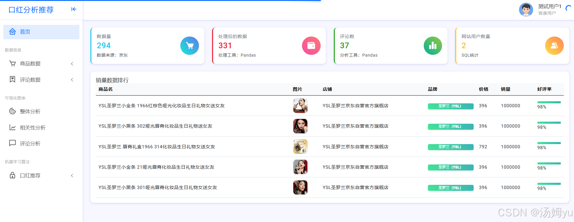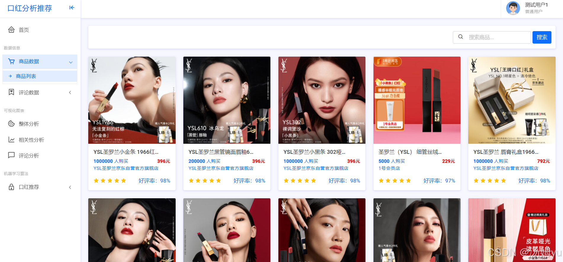 在数字化与个性化消费需求日益增长的时代背景下,开展基于 Python 大数据的口红商品分析与推荐系统研究具有多方面重要意义。从消费者角度而言,该系统能够极大地提升购物体验。如今口红品牌和产品种类繁多,消费者在挑选时往往面临信息过载的问题,难以快速找到心仪产品。此系统通过大数据分析,深入挖掘消费者偏好,结合用户浏览、购买记录等数据,为消费者精准推荐符合其需求的口红,节省了筛选时间,降低了决策成本,使消费者能够更便捷地选购到满意的口红。对于口红品牌商和销售平台来说,系统具有显著的商业价值。一方面,通过分析消费者对不同口红产品的反馈和偏好,品牌商可以精准把握市场需求,优化产品研发方向,推出更符合消费者期望的产品,提高市场竞争力。另一方面,基于用户画像的个性化推荐有助于提高商品的曝光度和销售转化率,增加销售额和利润。同时,系统还能为库存管理提供数据支持,避免库存积压或缺货现象,降低运营成本。从行业发展角度看,该研究推动了大数据技术在美妆行业的应用与发展,为行业数字化转型提供了有益借鉴。此外,精准的商品推荐有助于促进口红市场的良性竞争,推动行业创新,提升整体服务水平,满足消费者日益多样化的需求,对美妆行业的可持续发展具有积极的推动作用。