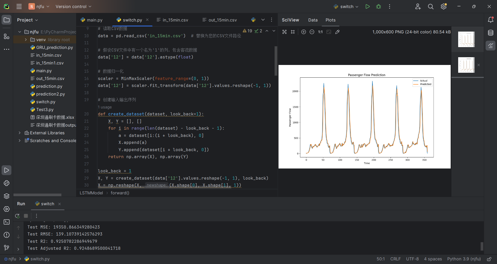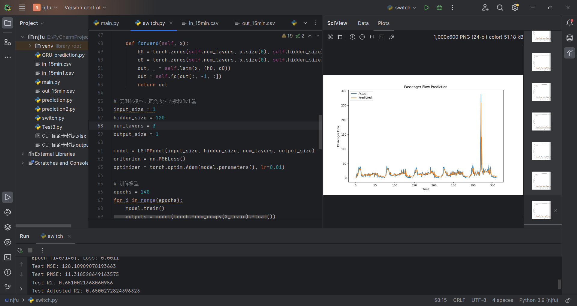 实例化模型中,对于不同站点的数据可以改变隐藏层,数据层的数值,同时可以适当调节学习率lr的值,以达到模型的最佳拟合。同时训练次数epochs避免太小导致模型欠拟合而效果不佳。