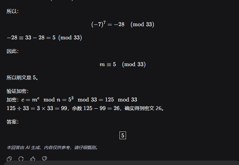 这里像是RSA,最方便的方式是直接问ai,这里全部复制下来给deepseek做,得到答案是5。