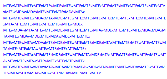 每一行都是一串base64编码,通过CyberChef一行行解码后得到如下由0和1组成的字符集合。