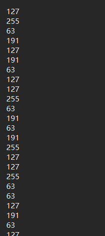 通过观察可以发现每个数字都不超过255,并且种类只有固定的四种,像是使用了TTL加密,这里的TTL和网络命令ping的回显中的TTL表示的是相同意思。简单来说,所有的数字都可以用8位2进制表示,并且这些数字的主要区别都是前面的两位,所以这个加密就是通过没四个数字组成一组,也就是每个数字前面的两位加起来,八位组成一个全新的字节。