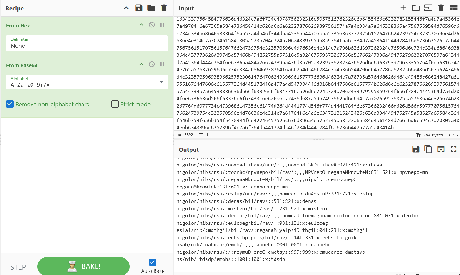 现在下载后发现每个文件大小还不同,直接从最大文件开始看起,放进CyberChef之后发现该文件实际为/etc/passwd。