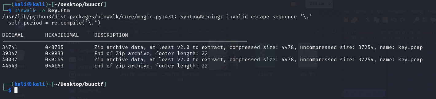 开始分析ftm文件,在kali中用binwalk时发现分离出了一个pcap文件。