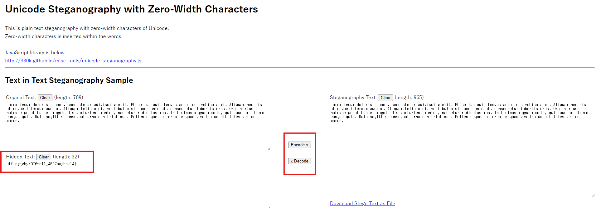 这个看起来像是零宽字符隐写,关于零宽字符隐写的原理可以参考这篇文章。有个好用的在线工具。把原文放入后先encode再decode就可以得到flag。