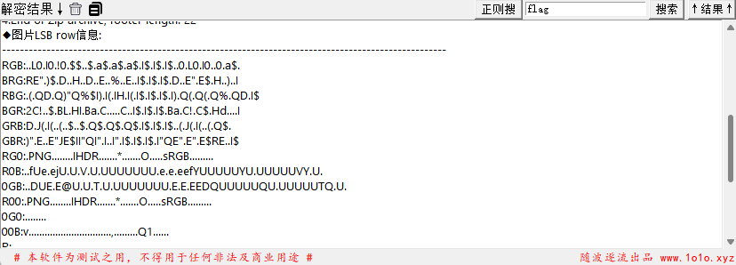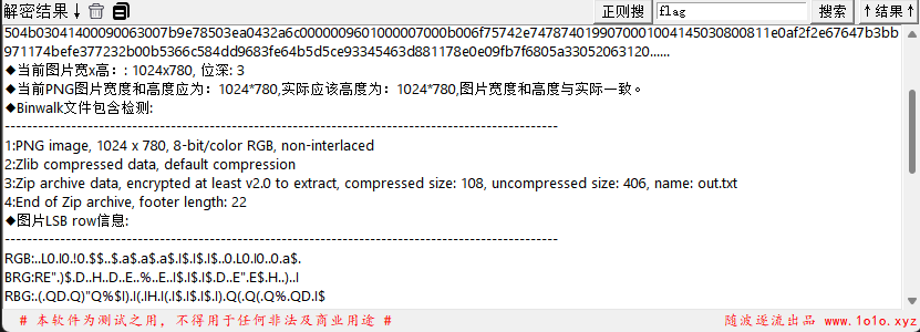 该zip也需要密码且不是伪加密。这里回到图片上,仔细看随波逐流工具分析结果,发现LSB虽然有字符但是不可读,但是RG0和R00显示有PNG开头的图片。R00是指GB无显示,只显示R。