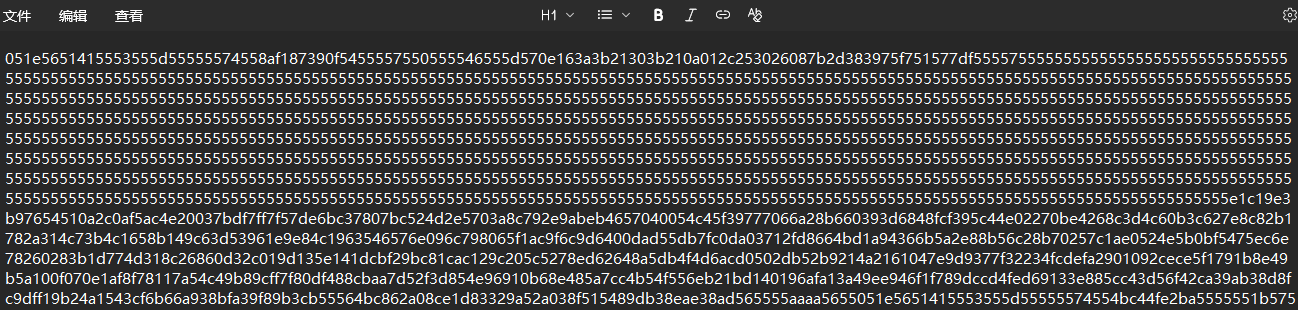 打开后会发现结尾有一大段空白字符,通过调整颜色从而显示出来。