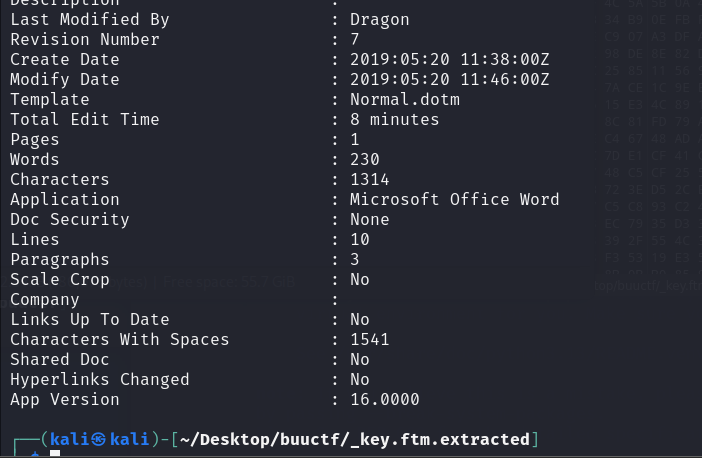 这里主要是不知道输出的是什么,所以先已txt格式输出。输出后放进kali使用exiftool发现类型为doc文档。