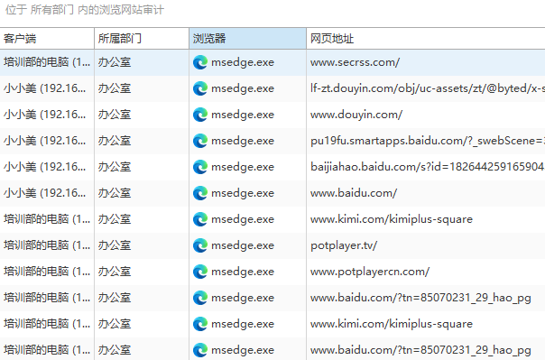 软件能完整记录员工访问的所有网站,包括网址、页面标题、访问时间等详细信息。支持按部门、人员、时间段进行筛选查询,并可生成可视化报表,帮助管理者分析员工上网习惯,及时发现非工作相关的浏览行为。