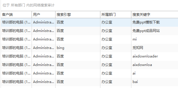 系统可捕捉员工在主流搜索引擎(如百度、谷歌)中的关键词输入,记录搜索关键词和搜索引擎,便于企业发现潜在风险,如搜索离职、竞业信息等敏感话题。