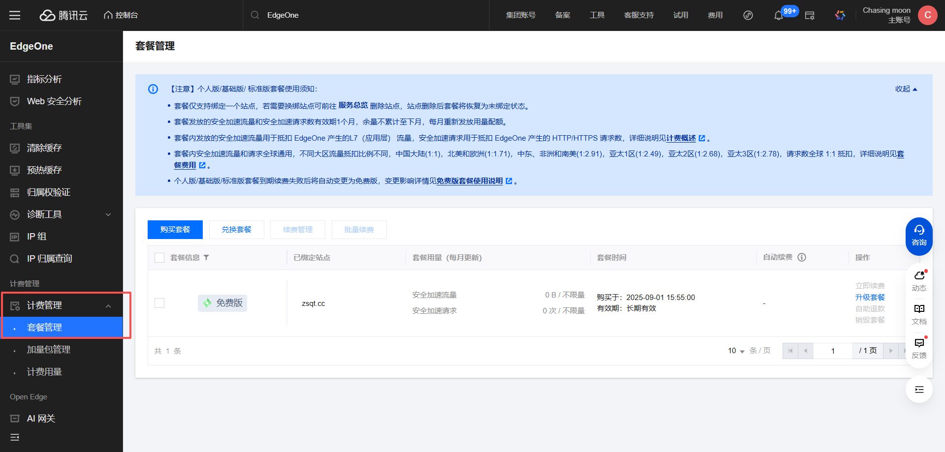 腾讯云EdgeOne是集CDN加速、安全防护和边缘计算能力于一体的边缘安全加速平台。其免费套餐提供了令人惊喜的丰富资源: