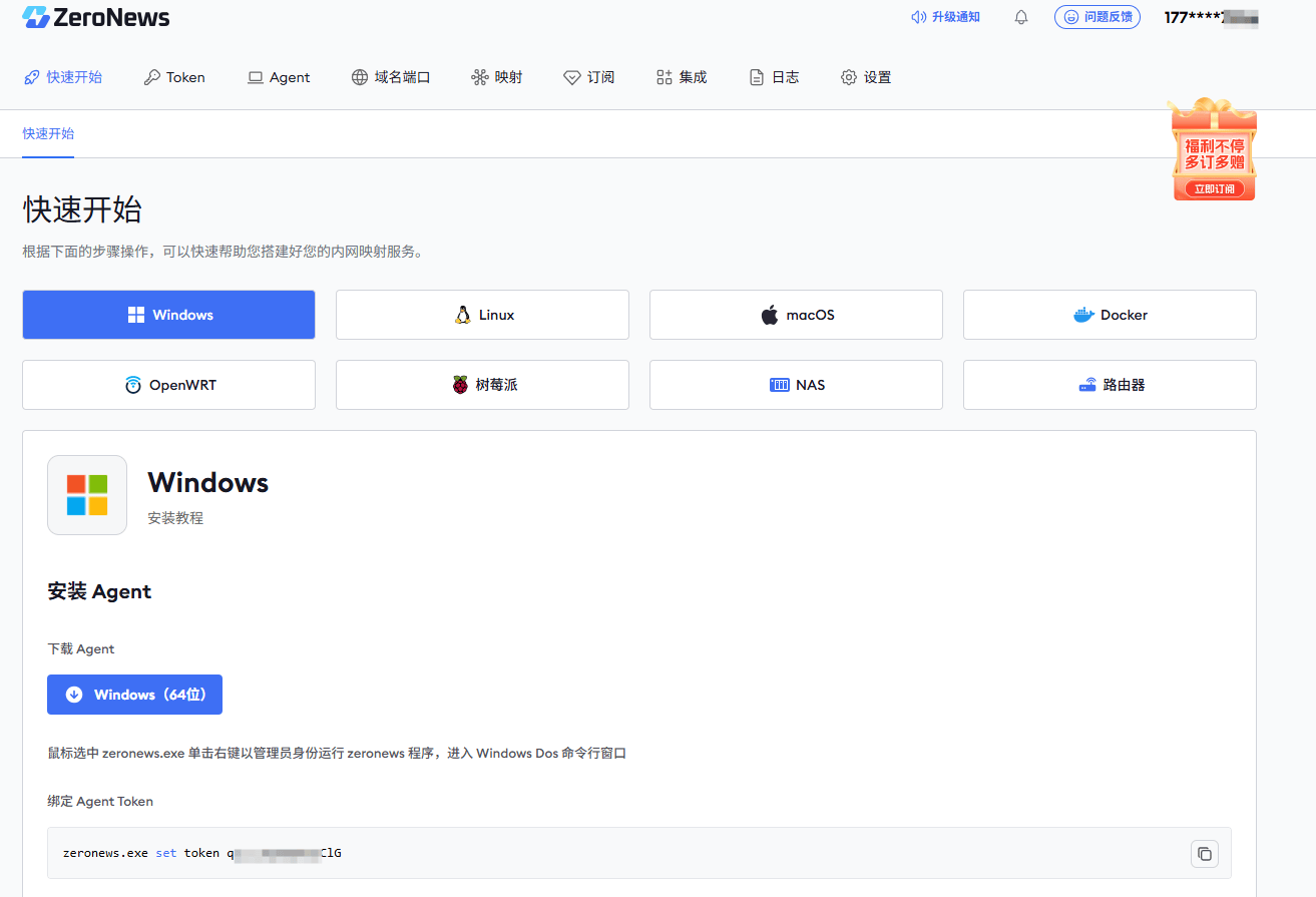 前往ZeroNews官网下载Agent,完成账号注册,在软件服务器上安装—登录Agent。