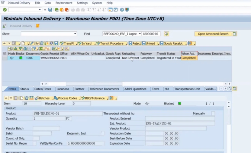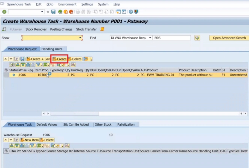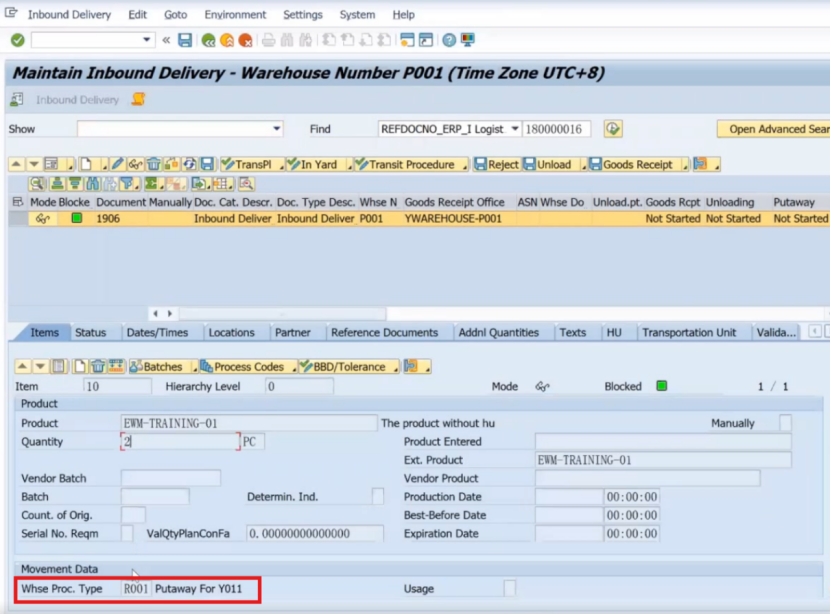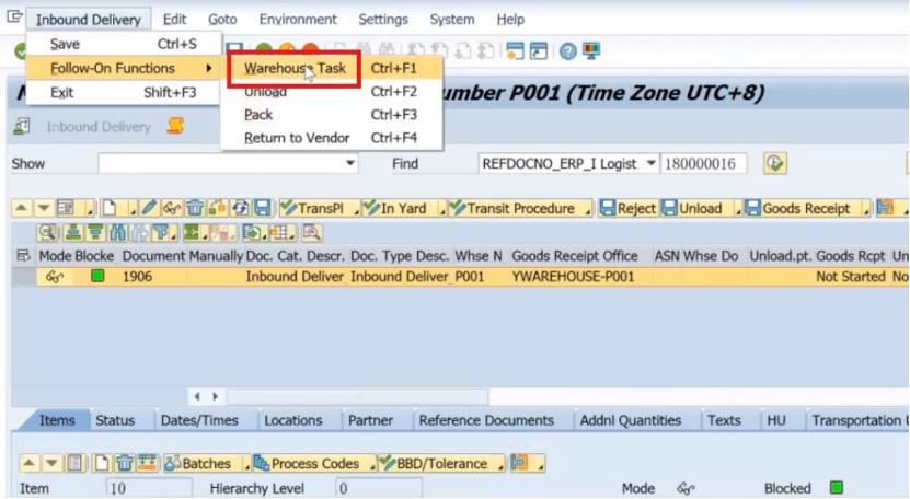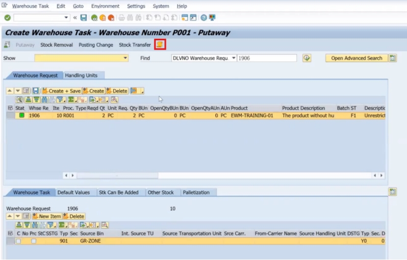SAP EWM初阶之为INBOUND DELIVERY创建上架的Warehouse Task